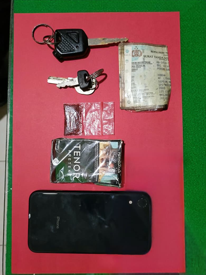 Dalam pengungkapan ini, polisi turut mengamankan sejumlah barang bukti antara lain satu klip plastik berisi tembakau sintetis seberat 4,71 gram, satu bungkus rokok, satu unit handphone, serta dua unit sepeda motor yang digunakan dalam aktivitas tersebut.
