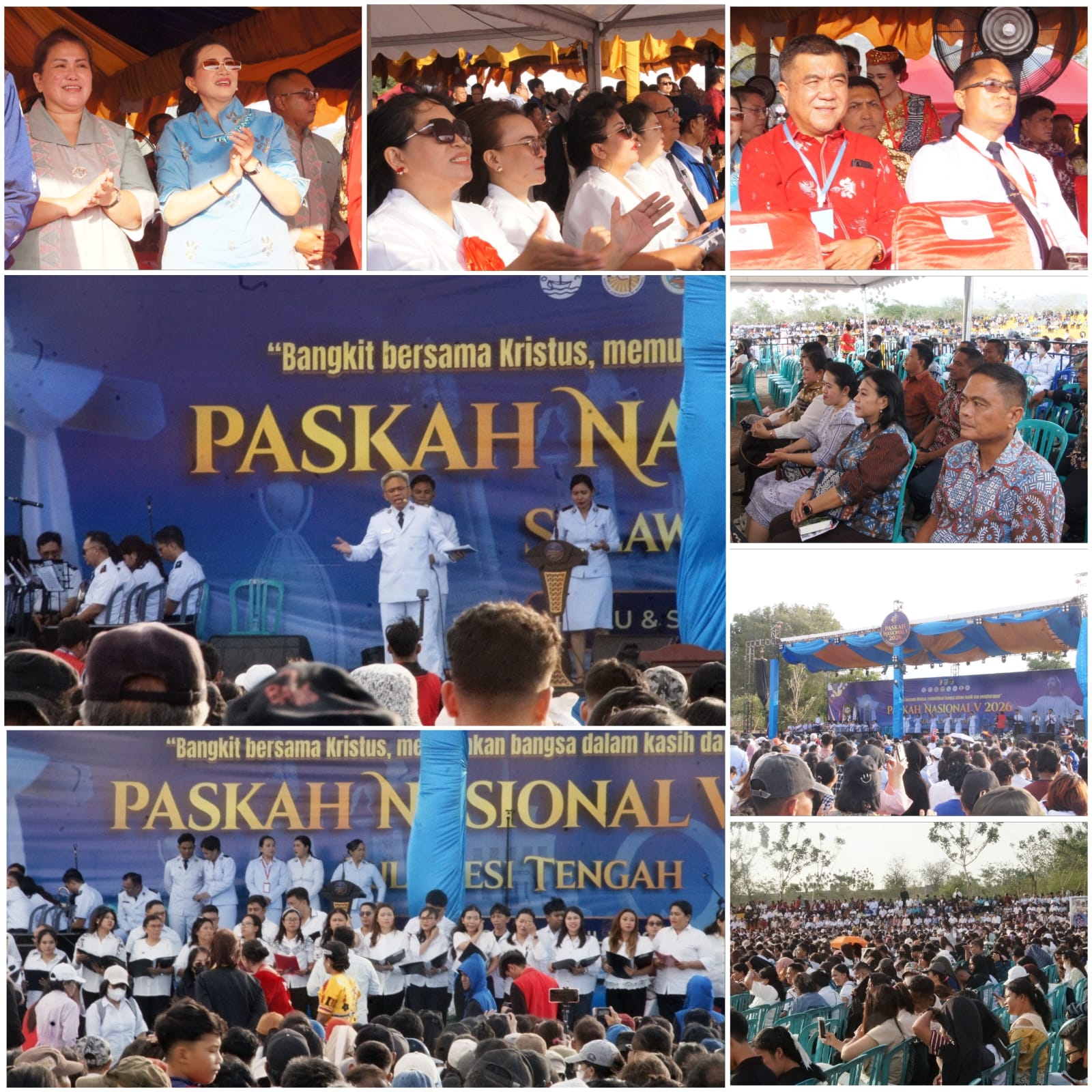 SIGI, SULAWESI TENGAH – MEDIA ONLINENEWS.ID//Lapangan Mako Brimob, Biromaru, Kabupaten Sigi, Provinsi Sulawesi Tengah, Minggu, 26 April 2026, berubah menjadi lautan jubah putih yang membentang di bawah langit sore yang terik. Lebih dari 20.000 umat Kristiani dari berbagai penjuru Nusantara memadati venue tersebut dalam satu kerinduan yang sama: merayakan kebangkitan Kristus dalam perhelatan Paskah Nasional V Sulawesi Tengah Tahun 2026. Acara akbar ini diselenggarakan bersama oleh Forum Umat Kristen Indonesia (FUKRI) dengan Gereja Bala Keselamatan Indonesia sebagai tuan rumah, mengusung tema “Bangkit Bersama Kristus, Memulihkan Bangsa dalam Kasih dan Pengharapan.”
